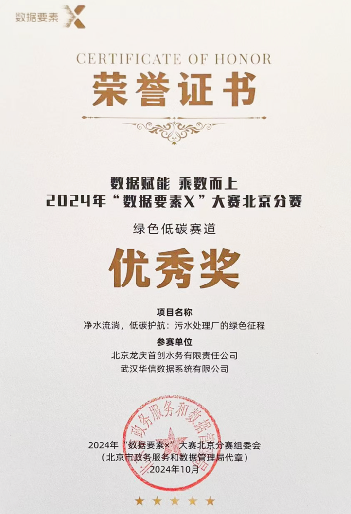 大赛北京分赛区是全国20个赛区中最重要的赛区,奖项评审由6位院士领衔的专家团队完成。武汉J9.com官网J9com数据系统有限公司与北京龙庆首创水务有限责任公司合作的项目,凭借其在污水处理领域的创新性应用以及对数据要素的有效利用,赢得了评委的高度认可。